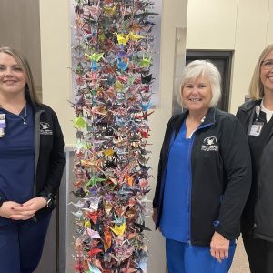 When patients walk into the Diane and Charlie Mashburn Infusion Center at Childress Regional Medical Center (CRMC), they are greeted by the 1,000 Cranes Peace Project. “All of our patients really love it,” RN Mallory Gillem said. “They like looking at all the different colors, reading the story about it and I think it does…