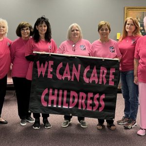 CHILDRESS – The crowd erupted when the Childress High School (CHS) cheerleaders gave We Can Care Childress members a check for $3,900 at their annual Pink Out Pep Rally on Friday, Oct 7. “This is the most they have done for us,” said We Can Care Childress President Carolyn Jennings. “It’s exciting. The girls (cheerleaders)…